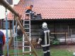 | Beschreibung: | Am späten Samstagnachmittag rückte die Feuerwehr Wartenberg zu einem gemeldeten Garagenbrand in die Hermann Gröber Strasse aus. Mit einem C-Rohr bekämpfte der Angriffstrupp unter schwerem Atemschutz den Brand, den bereits ein Nachbar mit dem Gartenschlauch klein gehalten hatte. Durch das rasche und umsichtige Handeln des Nachbarn und der eingesetzten Einsatzkräfte konnte ein großflächiges Übergreifen auf den Dachstuhl verhindert werden. Ein Teil der Dachziegel musste dennoch entfernt werden um kleine Glutnester abzulöschen, die bei der Kontrolle mit der Wärmebildkamera entdeckt worden sind. Gegen 19:38 Uhr konnten die letzten Kräfte einrücken. |
