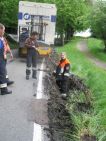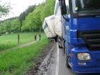 Der vollbeladene Hänger rutschte über das Bankett und drohte