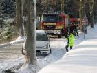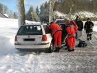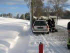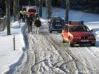 auf Höhe Schachtelberg ein Fahrzeug auf verschneiter und vereister