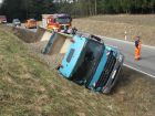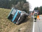 | Beschreibung: | Eine eher unkonventionelle Art, sicher der Ladung zu entledigen, wählte der Fahrer dieses Lastzuges aus dem Landkreis Miesbach. Aus Unachtsamkeit, so die Erdinger Polizei, war der 57Jährige gegen 11.00 Uhr in Höhe der Abzweigung nach Maria Thalheim mit dem Gespann aufs Bankett der Kreisstraße ED 1 geraten und erheblich in Schräglage liegen geblieben. Verletzt wurde niemand, auch am Lastwagen entstand kein nennenswerter Schaden. Aufwendig und mehrere Stunden in Anspruch nehmend war allerdings die Bergung von Lastwagen und Anhänger, um die sich zuerst die Feuerwehr Maria Thalheim und später ein Trupp der Firma kümmerte, welcher der Lkw gehört. Die anderen alarmierten Feuerwehren aus Steinkirchen, Wartenberg und Erding mussten nicht eingreifen. Quelle: Münchner Merkur/Erdinger Anzeiger |