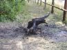 an dieser Stelle einen brennenden Baumstamm. Da ein Übergreifen der