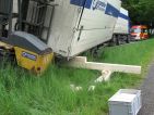 Der vollbeladene Hänger rutschte über das Bankett und drohte